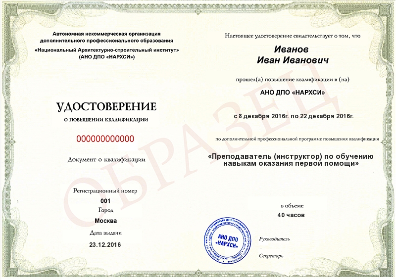Курс обучения Преподаватель (инструктор) по обучению навыкам оказания первой помощи (40ч)