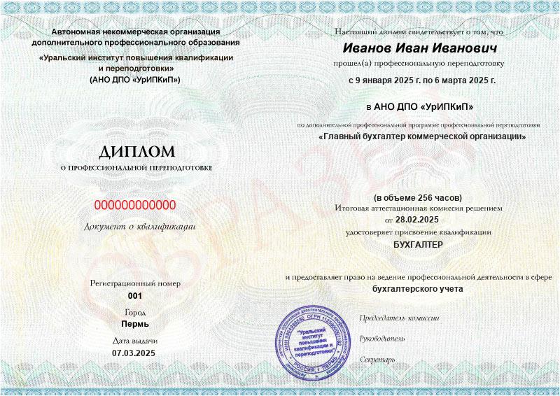 Курс обучения Главный бухгалтер коммерческой организации (256ч)