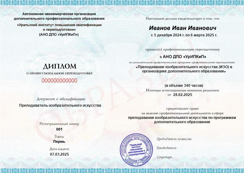 - Образец диплома о профессиональной переподготовке.
