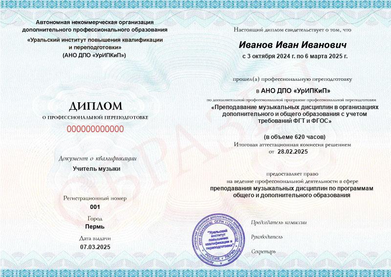• 2 квалификации: Учитель музыки + Преподаватель музыкальных дисциплин