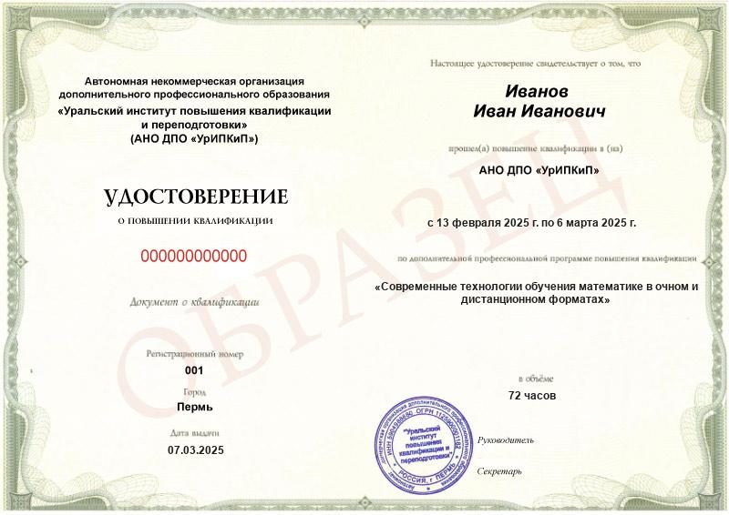 • Повышали квалификацию в АНО ДПО «УрИПКиП» – вам будет выдано удостоверение.