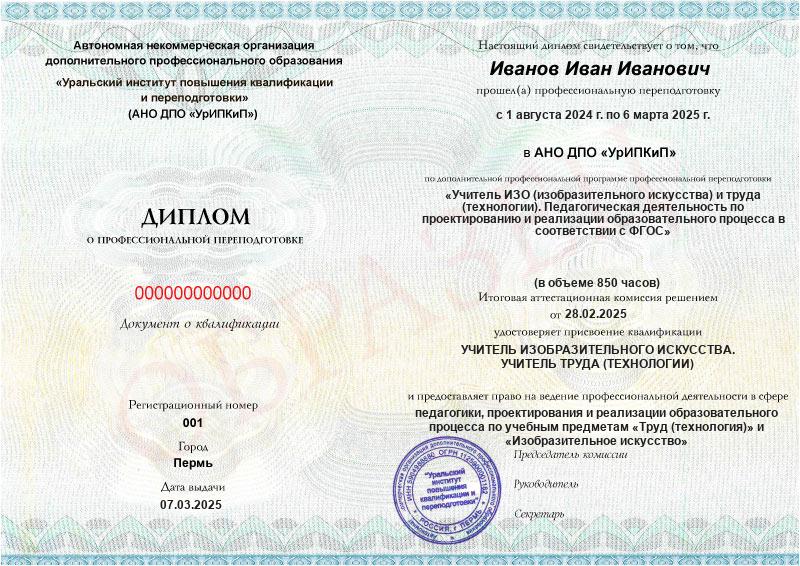 Да, дипломы и удостоверения оформляются в соответствии с действующим законодательством РФ. Документы печатаются на специальных бланках, заверяются печатью АНО ДПО «УрИПКиП».