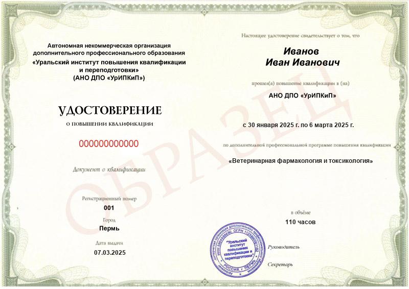 Курс обучения Ветеринарная фармакология и токсикология (110ч)