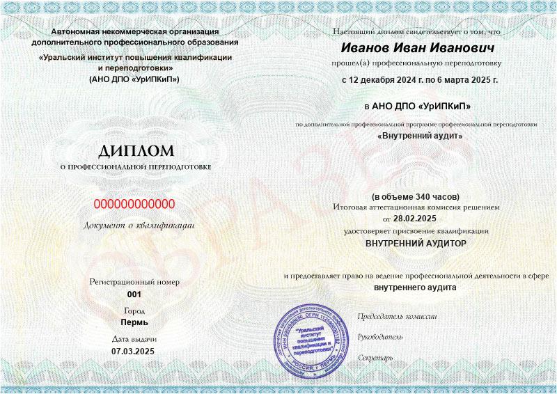 - Образец диплома о профессиональной переподготовке.